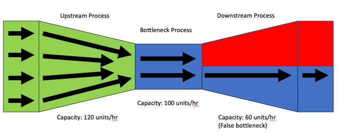 I’ve seen places where they got artificial flow by restricting output of the process upstream of the bottleneck. In this factory, the true bottleneck was the finished goods process and the manufacturing process upstream would continuously experience down time as the product buffer had backed up all the way to the outfield of the machines (build up of WIP). Rather than focus efforts on improving the bottleneck process to achieve flow, they restricted the output of the manufacturing process (by turning off machines). This made it look like they had flow but ultimately the output of the factory remained the same.